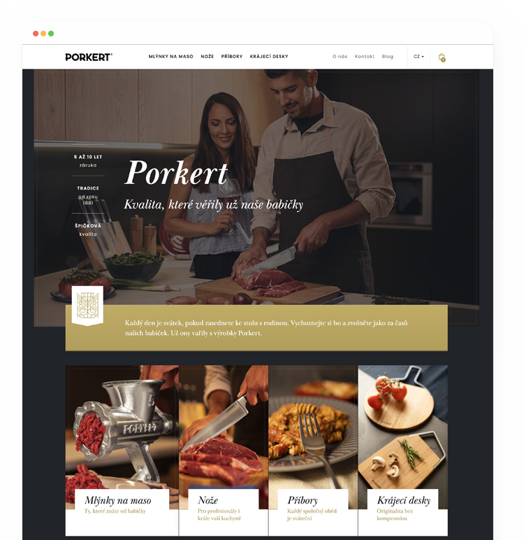 Pre výrobcu kuchynských potrieb Porkert sme pripravili moderný e-shop na platforme Rocketoo MAX. Riešenie kombinuje dlholetú tradíciu značky s prehľadným a užívateľsky prívjetivým prostredím, ktoré uľahčuje zákazníkom výber aj nákup originálnych produktov.
